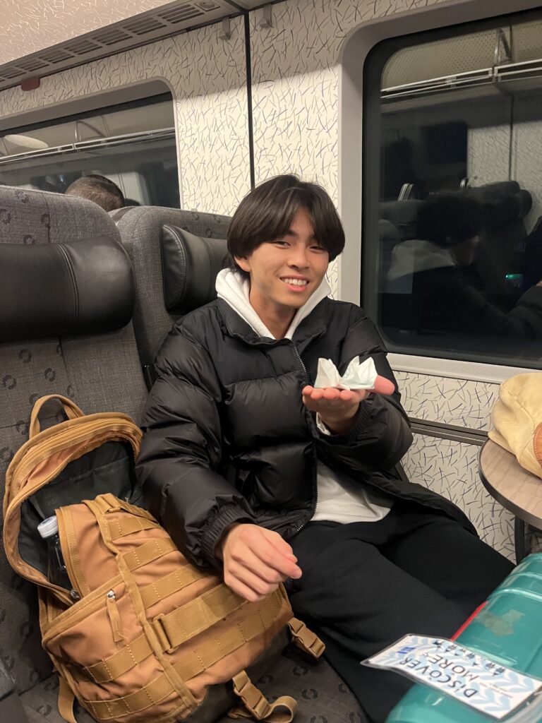 移動中、みんなで折り紙をして「このスタツアで出会う誰かにプレゼントしよう!」と話していました。
