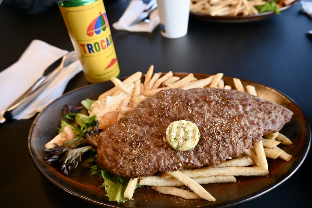 薄切りのお肉にハーブバターを添えた、ボリューム満点の家庭料理!