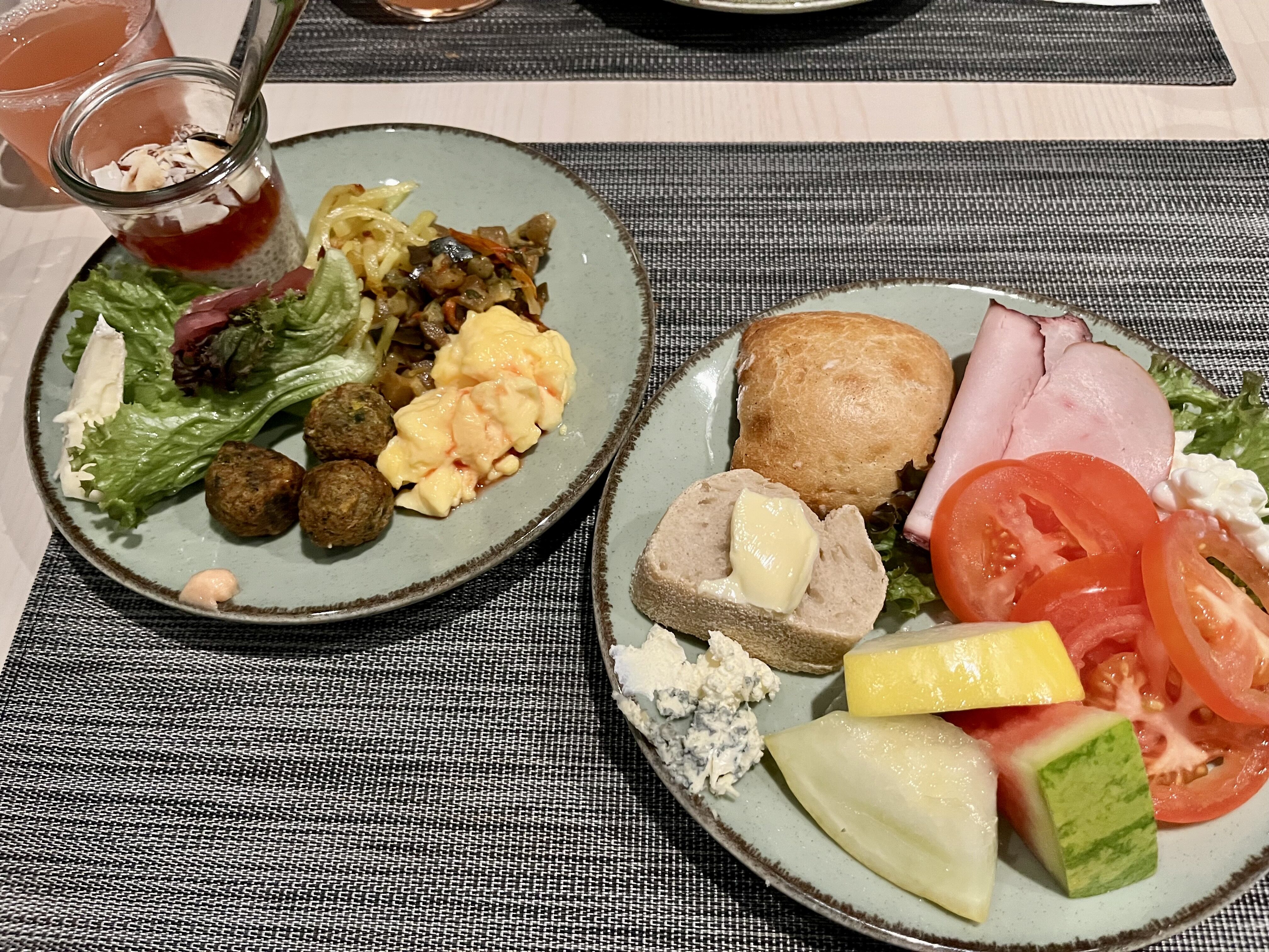 パン、チーズ、ハム、ヨーグルト、フルーツなど、どれも新鮮でバランスの良い内容でした。