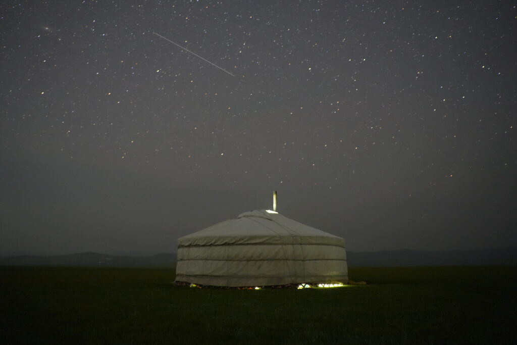 遊牧民の方から「夜中の1時半頃に天の川が見えるよ」と教えてもらい、眠い目をこすりながら待機。