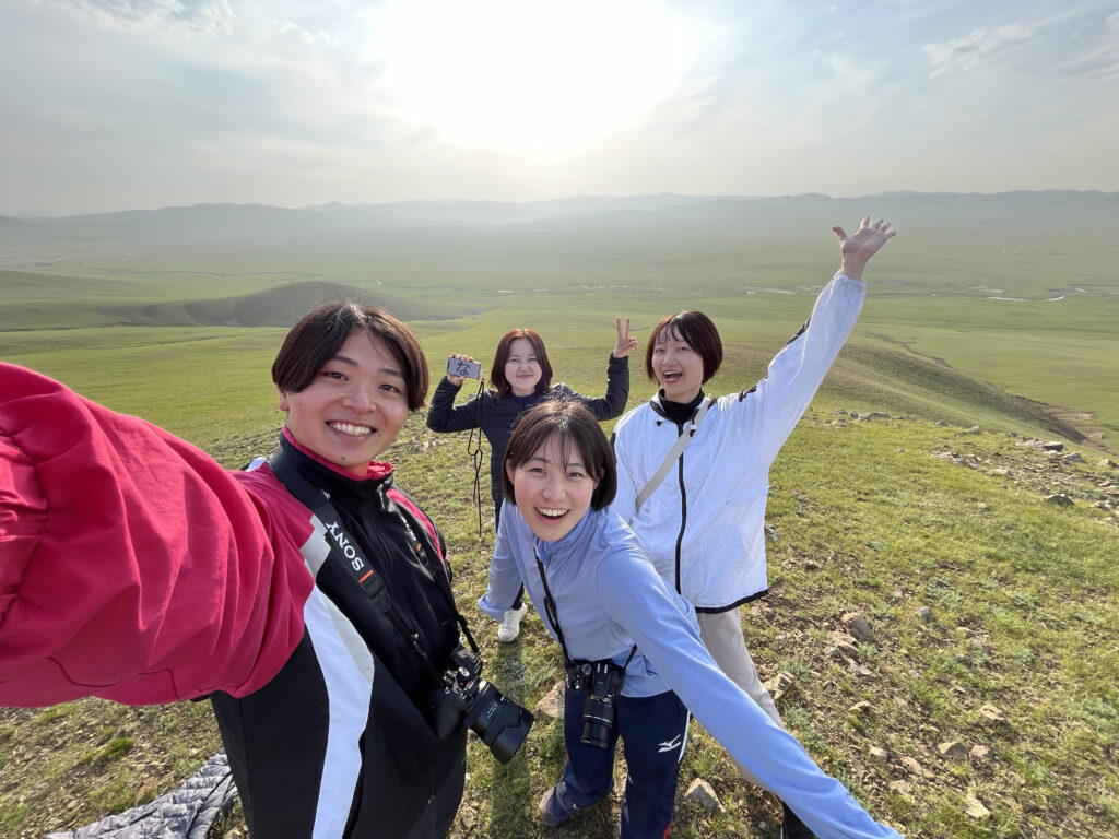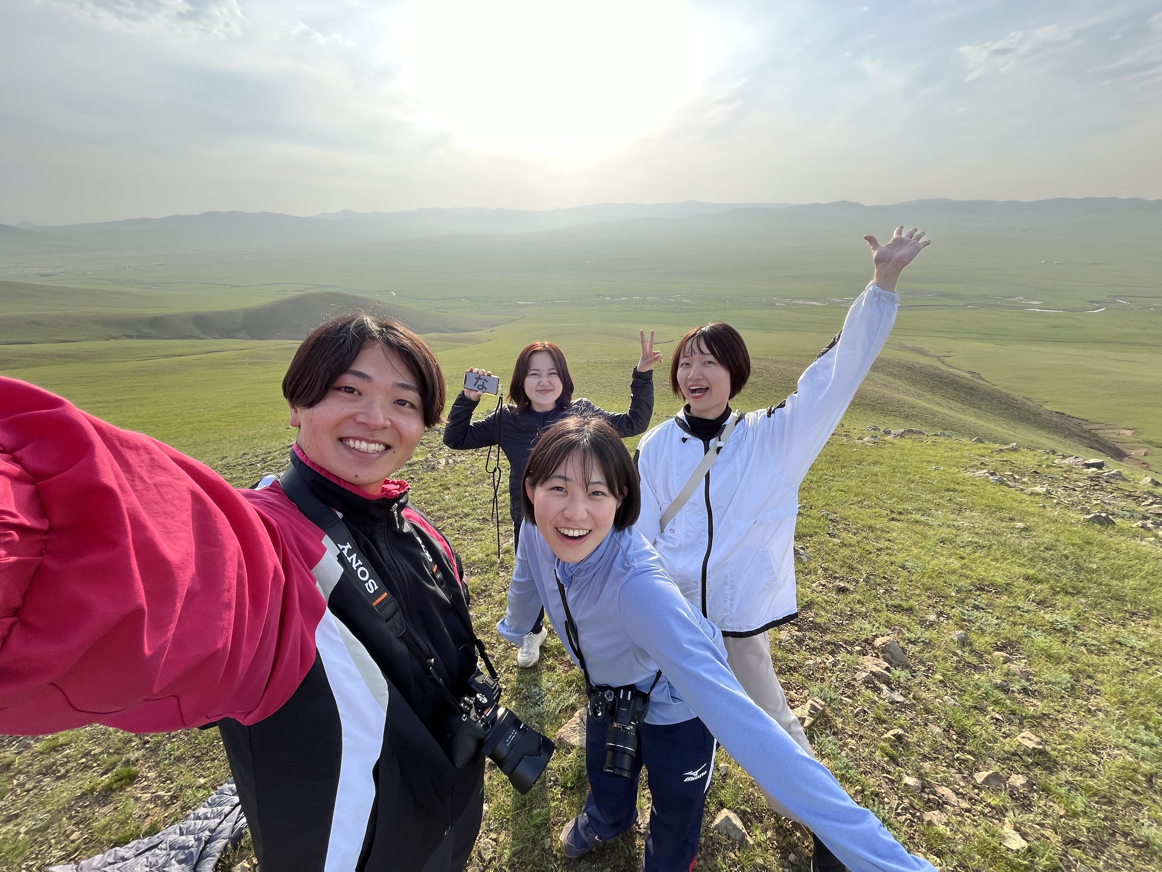 1時間弱かけて登った先には、息をのむような絶景が。 朝日が大地を照らし、遠くに見えるゲルはまるで点のように小さく感じました。 「ここまで来てよかった」——その一言に、全員の気持ちが込められていました。