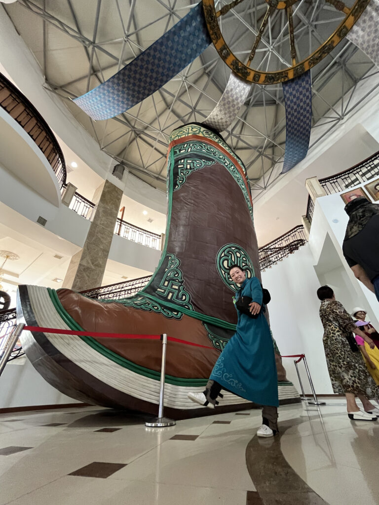 モンゴル伝統のブーツ“ゴタル”は、乗馬時に足が鐙から抜け落ちるのを防ぐためのもの。 この巨大ゴタルには、牛革が約450枚も使われているそうです。