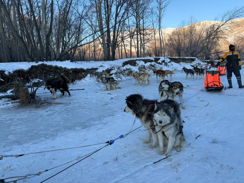 地面には凍った家畜の糞が石のように張り付いていて、ソリがそれに当たると「ガツン!」と大きな音を立てて少し浮き上がり「転倒するかも!?」というスリルと顔に当たる冷たい風を感じ、また犬たちの力強さを感じながら氷の上を駆け抜ける爽快感は、一生忘れられない思い出になりました!!!